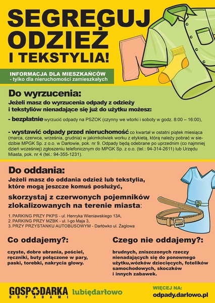 Jeżeli masz do wyrzucenia odzież lub tekstylia, nienadające się już do użytku możesz: