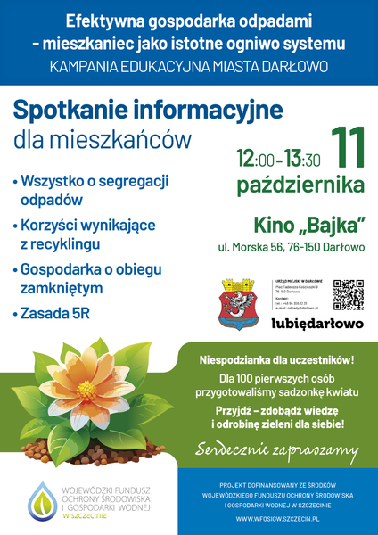 Burmistrz Miasta Darłowo wraz z Referatem Gospodarki Odpadami zaprasza mieszkańców na spotkanie informacyjne dotyczące gospodarki odpadami, które odbędzie się: