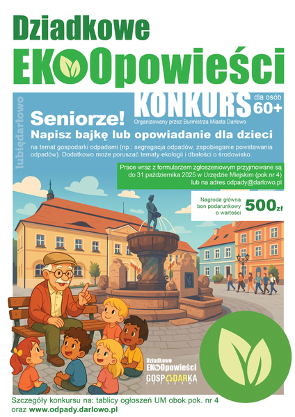 Prace należy składać do 31 października 2025 r. w Urzędzie Miejskim w Darłowie lub przesłać na adres e-mail: odpady@darlowo.pl.